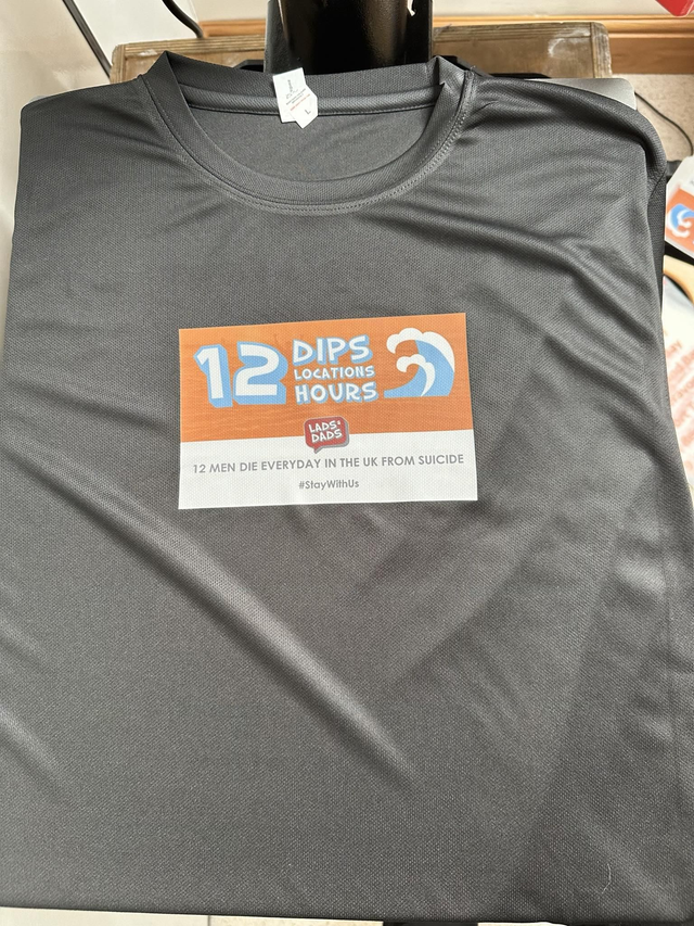 Introducing our special edition "12 Dip" concert-style t-shirt, designed to raise awareness for men's mental health. With 12 locations on the back representing the 12 men who sadly lose their battle every day, this t-shirt serves as a powerful reminder to prioritize mental wellness. Made with breathable material, this t-shirt is perfect for concerts, festivals, or everyday wear. And with £5 from every sale going towards our counselling pot, you'll be supporting an important cause while looking stylish and comfortable. Join us in breaking the stigma surrounding men's mental health issues and grab your 12 Dip t-shirt today.